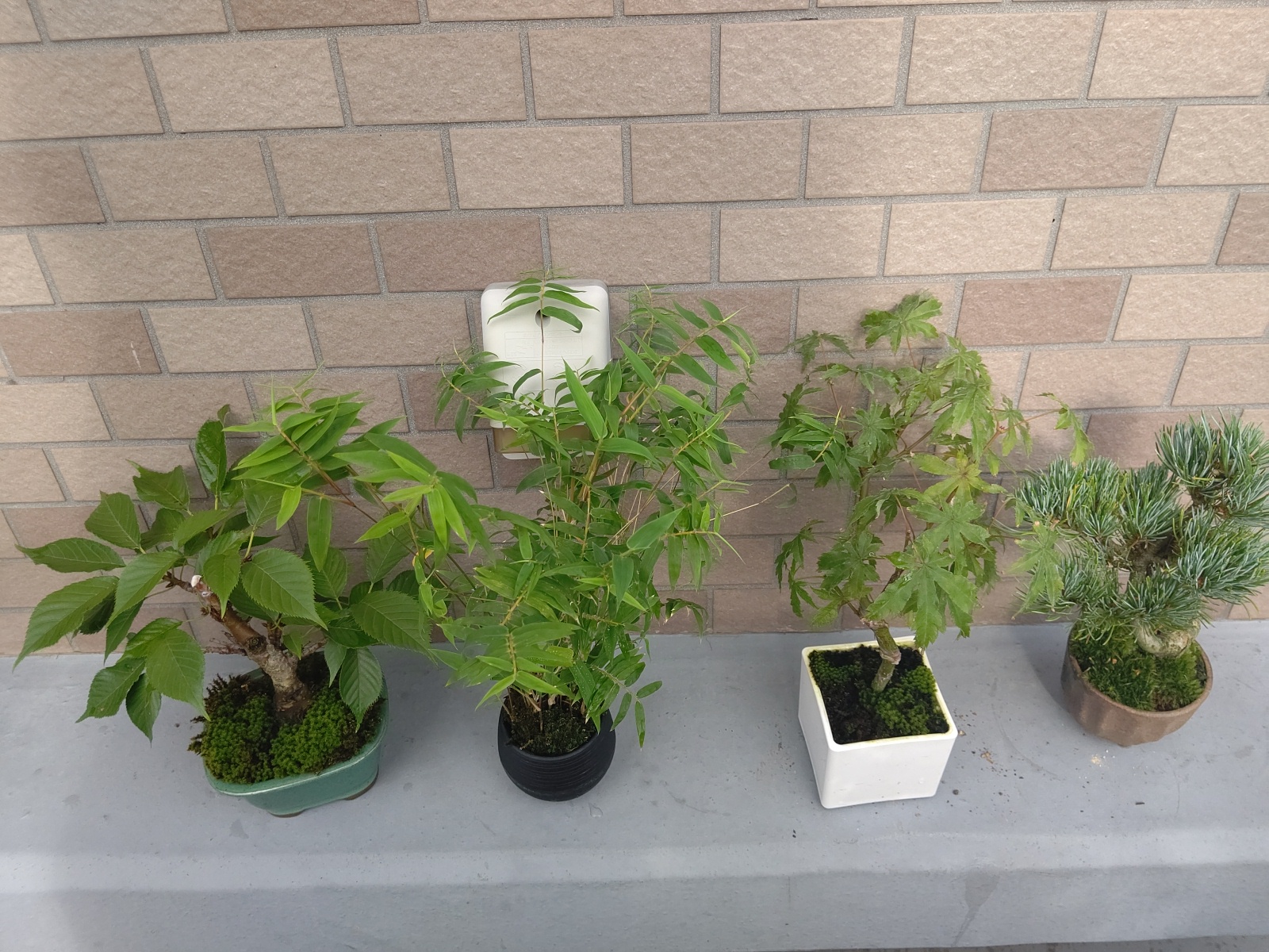 ミニ盆栽、桜、笹、紅葉、松です。