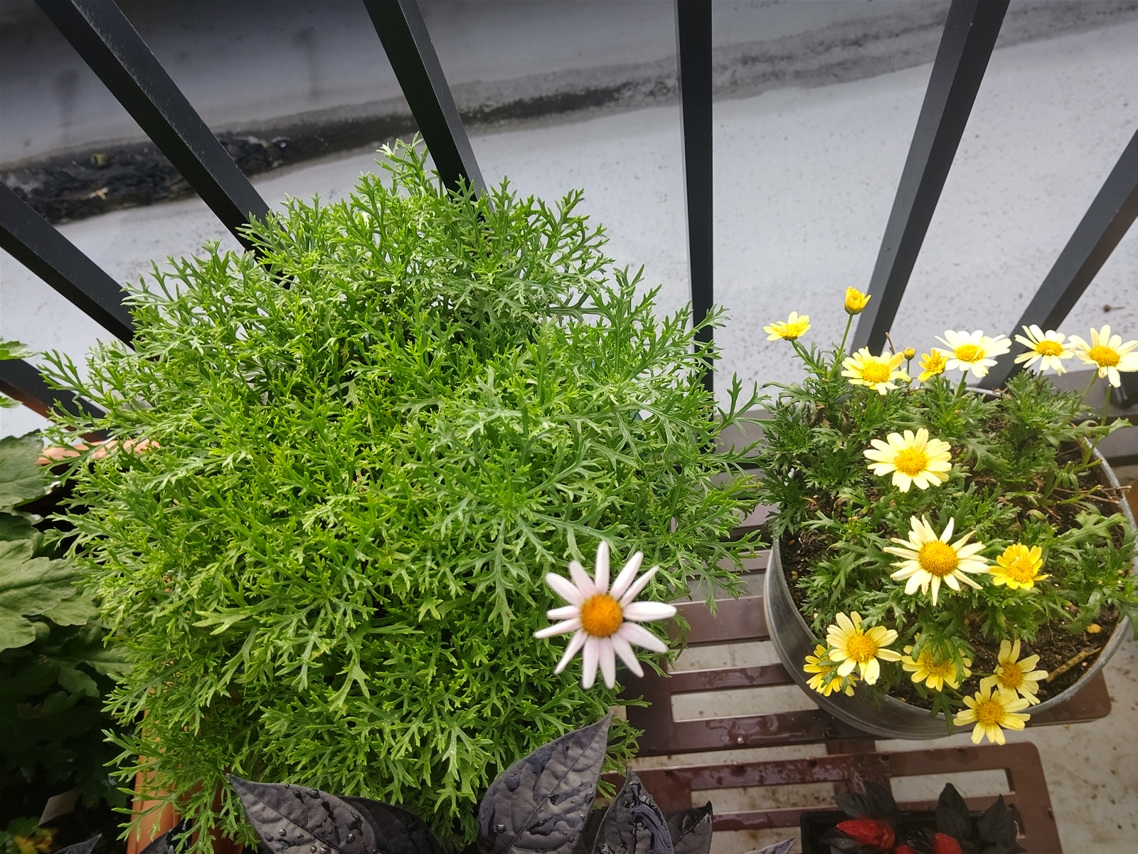 雨ばかりでお花に水がたまり、重さで茎が裂けましたが