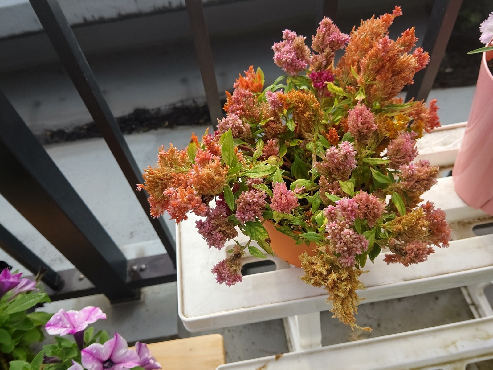 白、紫、濃いピンクの3色が咲いています。