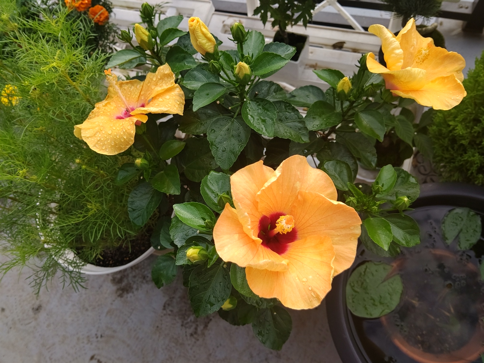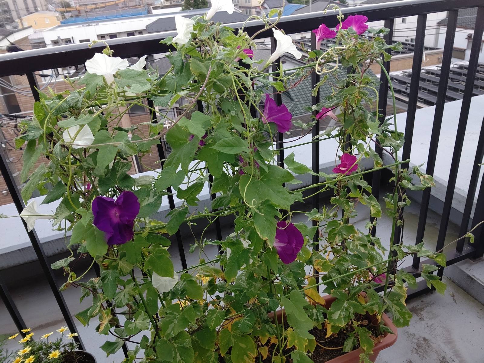 一番花が終わった後、小さい二番花、三番花、四番花が一斉に咲きました。