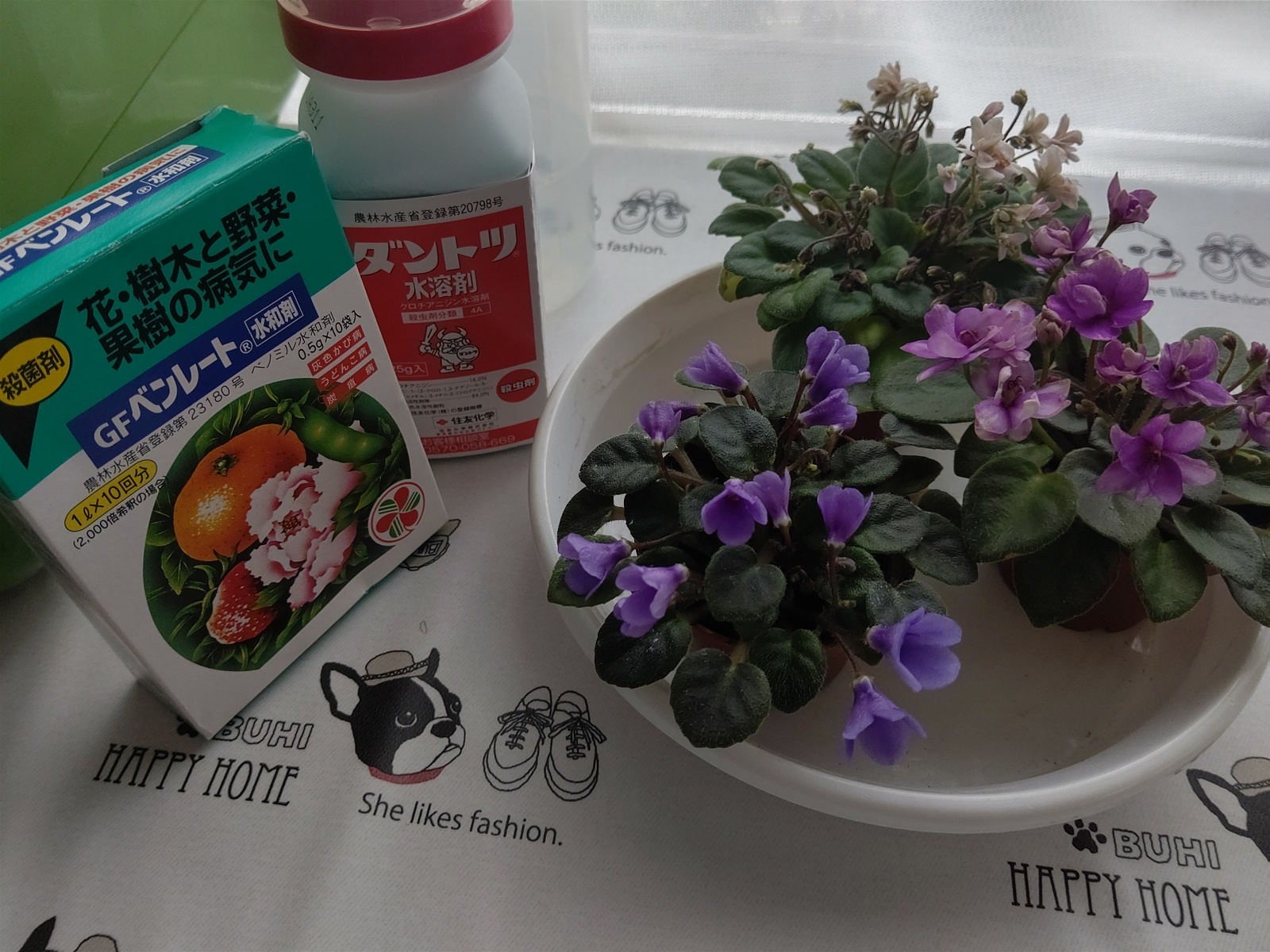学校で育てているミニセントポーリアは消毒無事終わりました。