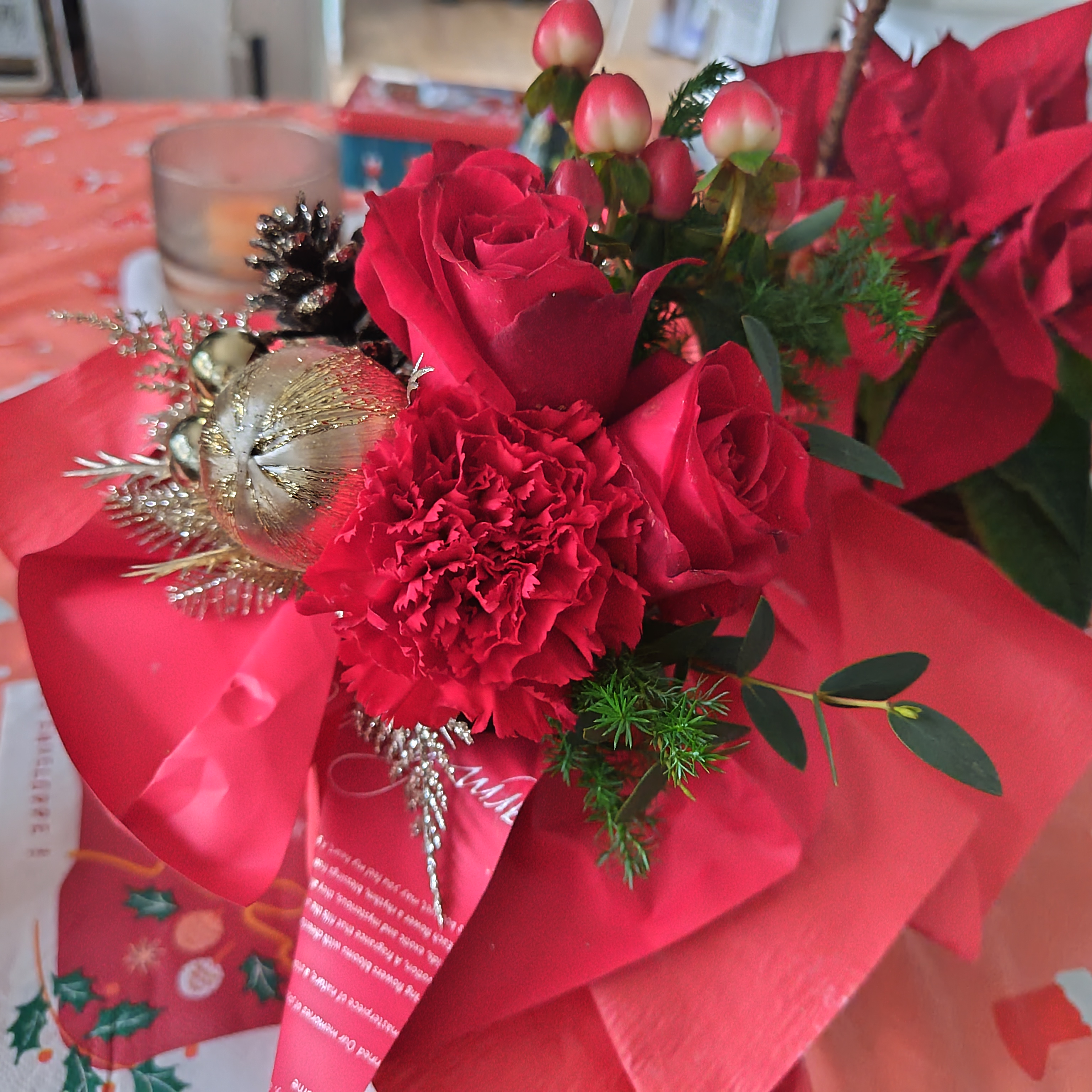 クリスマス用の生花、ちょっと高かったけど